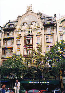 昼食後、「プラハの春」で知られるヴァーツラフ広場に出かけた。ソ連軍の戦車によって蹂躙されたプラハの自由化改革も、すでに過去の話となった感が強い。通りには、若者や観光客が集まり、どこにでもある都会の喧噪があった。緩やかな坂を上った行き止まりに博物館がある。博物館に向かって左手にはアールヌーボーの様式で建てられたホテル・エヴロパ(写真)が昔のままの姿をとどめていた。