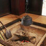 囲炉裏はたき火を家の中に持ち込んだもので、縄文や弥生時代の住居跡にもすでに見られます。暖房の他にも煮炊きなどの炊事の道具として、また照明の役割も果たすなど、生活の中で重要な機能を担っていました。