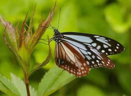 1頭のアサギマダラは、しばらくの間、フジバカマの若葉に止って若芽から出る樹液を吸っていましたが、写真撮影のあとすぐに飛んで行ってしまったので、マーキングをすることはできませんでした。