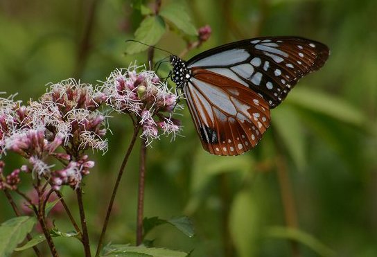 秋(10月中旬)には、自宅前の畑のフジバカマの花蜜を求めて、たくさんのアサギマダラたちがやって来ますが、初夏にこの場所でアサギマダラを見かけることはとても珍しいことです。