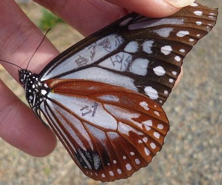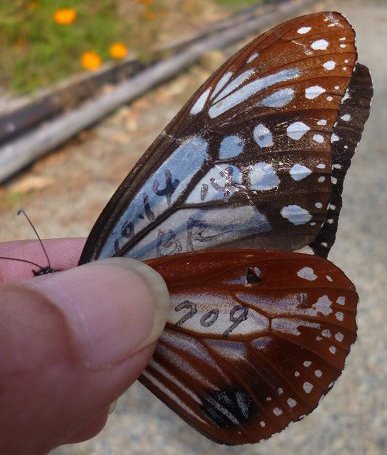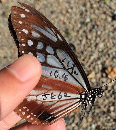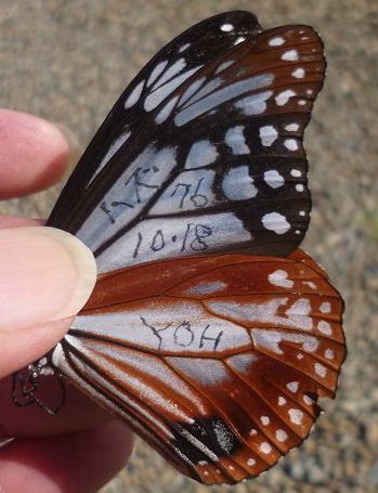 8 | ハズ 10.4 さと 62 | ♂ | 10月18日 13:10 | 愛知県西尾市三ケ根山三ケ根観 | 14日間 | 約49Km | トバF 10/18 U-261を追記放蝶 |