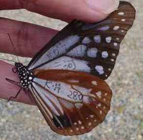 1 | サガラ 10/6 三河 K・H280 | ♂ | 10月15日 12:20 | 愛知県蒲郡市相良町さがらの森 | 9日間 | 約67Km | トバF 10/15 U-230を追記放蝶 |