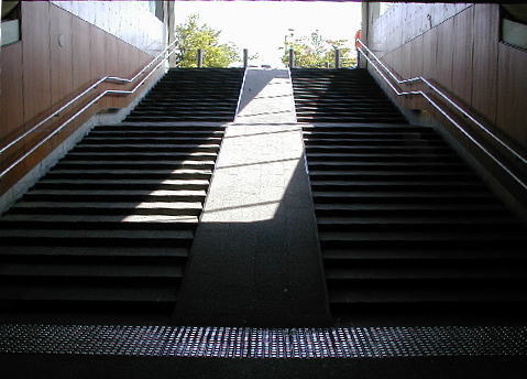 この交差点には横断歩道はありませんがスロープ付き地下道があります。