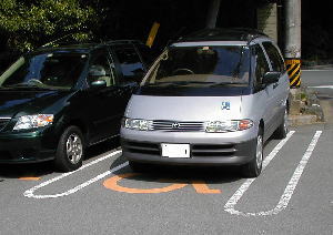 | ・2 障害者優先駐車場 (3台分) 普通の駐車スペースに車椅子マークが付いてあるだけなので、あまり意味はない。 幅員 1m80cm 隣接余地幅 60cm |