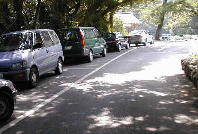 | ・3 普通車パーキング 入り口に少し傾斜はあるものの、普段観光客が少ない時は、こちらの駐車場を使用した方が近い。 写真は駐車場出口の縦列駐車(ただし傾斜あり) |