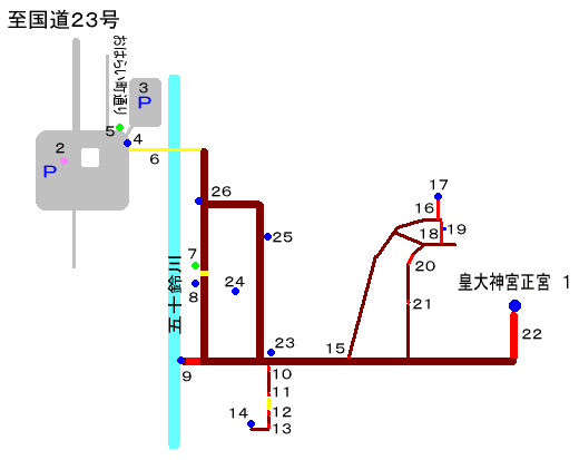 黄色部は橋(通行にバリアなし)