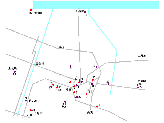 | 25 | 中村町458 | 五十鈴中学校 | 〇 | 〇 | 〇 | 〇 | . | 22-2929 | . |