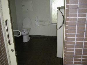 | ・入り口 道からのみ ・パーキング(屋根 なし) 普通車用 2台 障害者用 1台 ・トイレ (写真) ・他 車椅子対応公衆電話 |