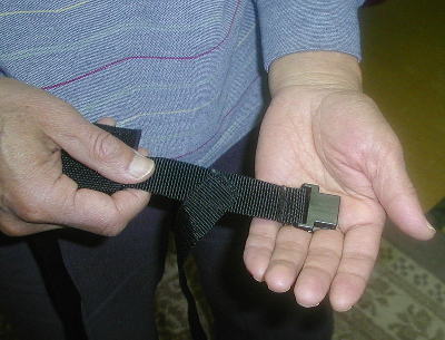 1 バックル受け部を左手に持つ。