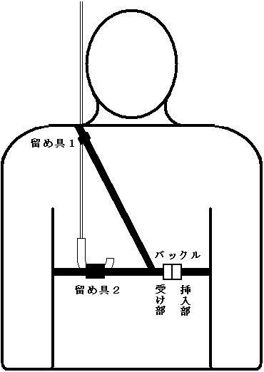 2(図の)留め具1を、右肩に乗せる。
