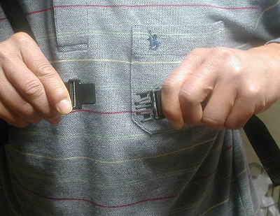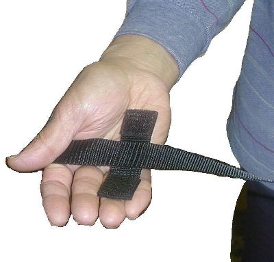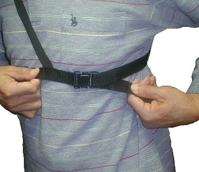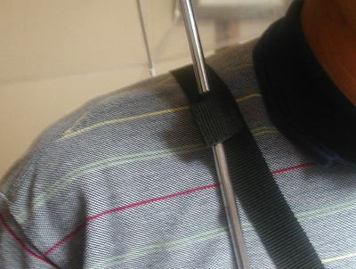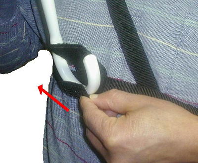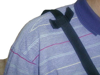 留め具1を右肩に乗せた時にマジックテープを外しておくと、取り付けのときに便利です。