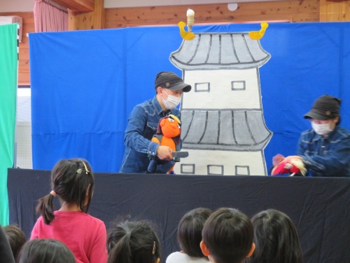 人形劇団「ししかばぶ」の皆さんに「ぴんすけぽんすけ忍法帖」の人形劇をみせていただきました。